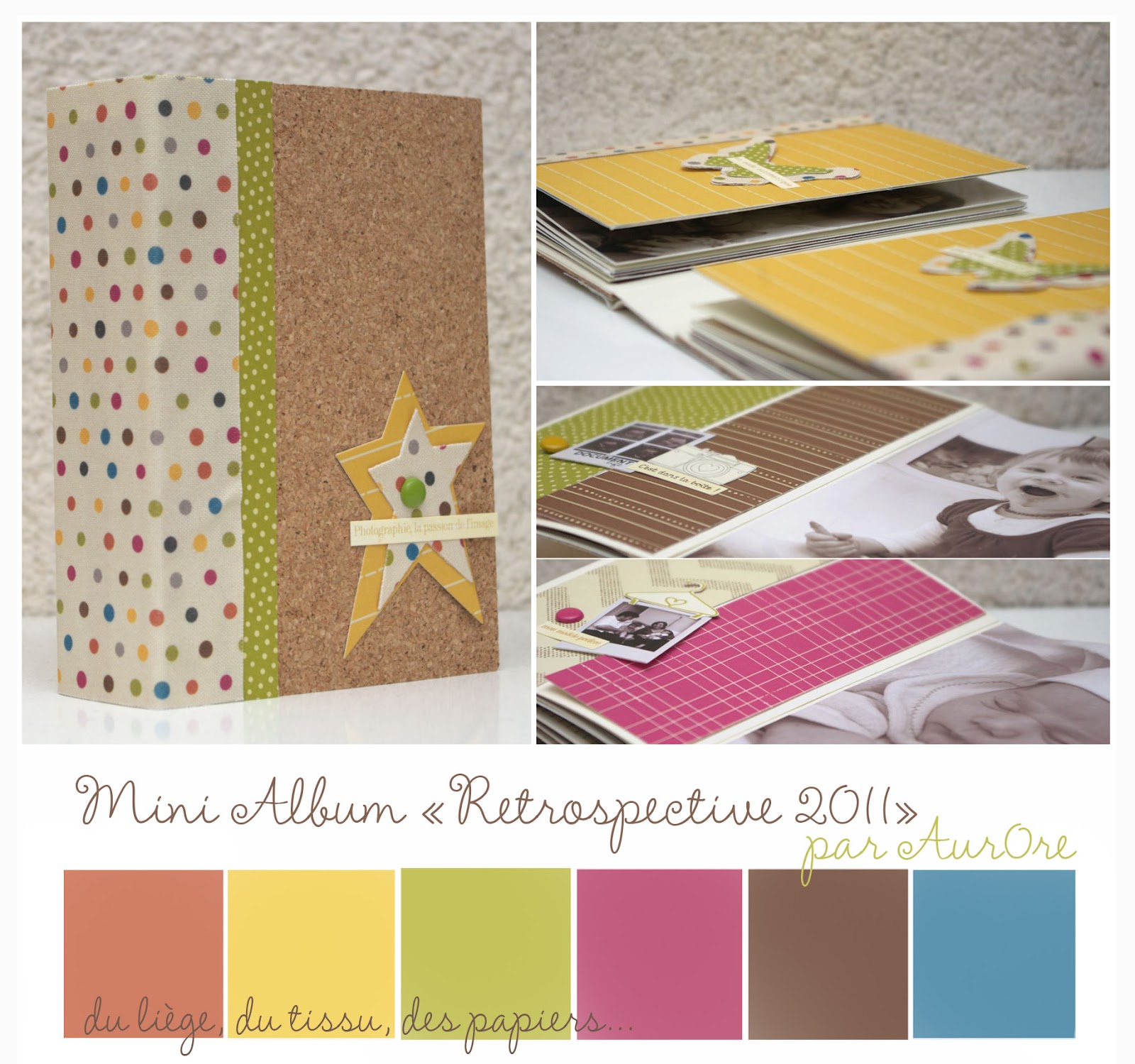 Ce projet mélange liège, tissu et papiers colorés. J'ai choisi de réaliser une rétrospective de l'année passée, mois après mois, mais le thème reste libre. Vous pourrez ainsi retracer la première année d'un enfant, ou un séjour de vacances. Et comme le mini est constitué de 2 parties, vous pourrez également traiter deux sujets distincts. Les papiers étant recto/verso et les imprimés variés, vous pourrez choisir de mettre en priorité les couleurs que vous préférez.